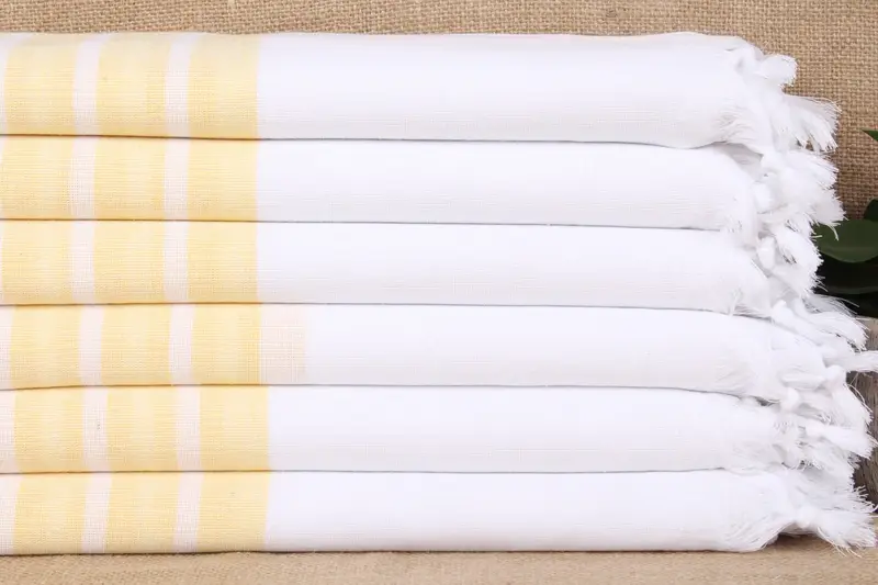 Custom Beach Towel Yellow Striped Turkish Cotton, Beige, 40x71 Inches