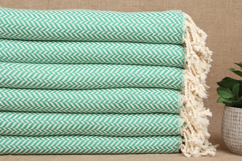 Turkish Towel Beach Green Chevron Boho, Personalized Organic Cotton, 40x71 Inches
