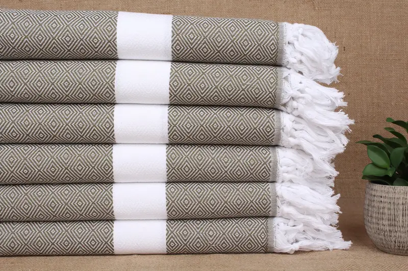 Personalized Beach Towel Khaki Green Diamond, Organic Cotton, 40x71 Inches