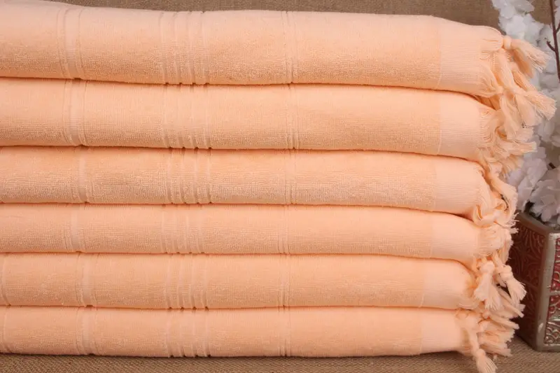 Bridal Shower Gift Striped Terry Towel Coral Organic Cotton, 36x71 Inches