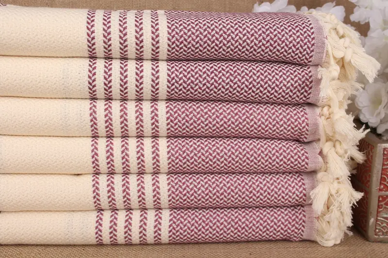 Damson Cotton Towel Organic Striped Bath, Beige, 40x71 Inches