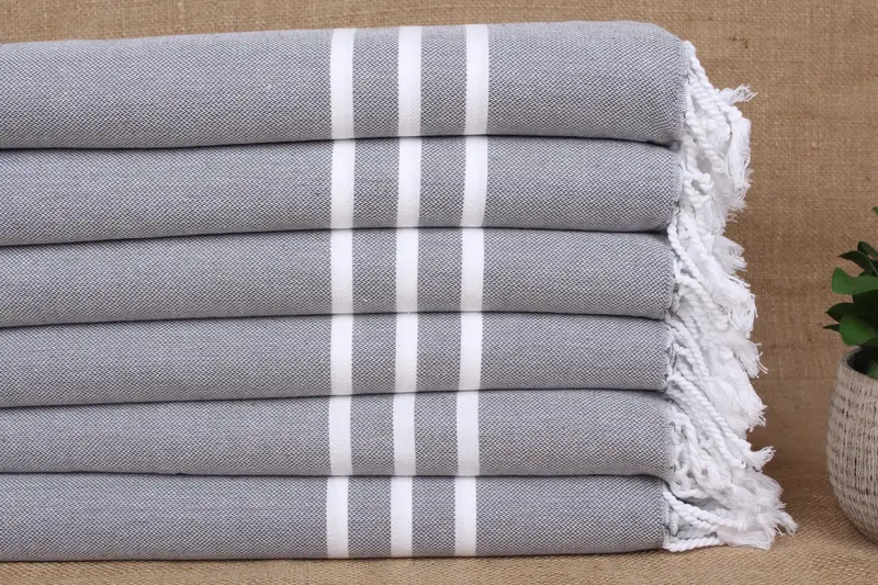 Monogrammed Kitchen Towel Dark Gray Stripes, Organic Cotton, 24x40 Inches