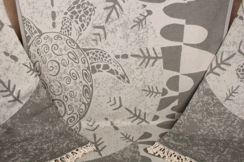 Custom Gift Turtle Design Towel, Khaki Green Organic Cotton, 40x71 Inches