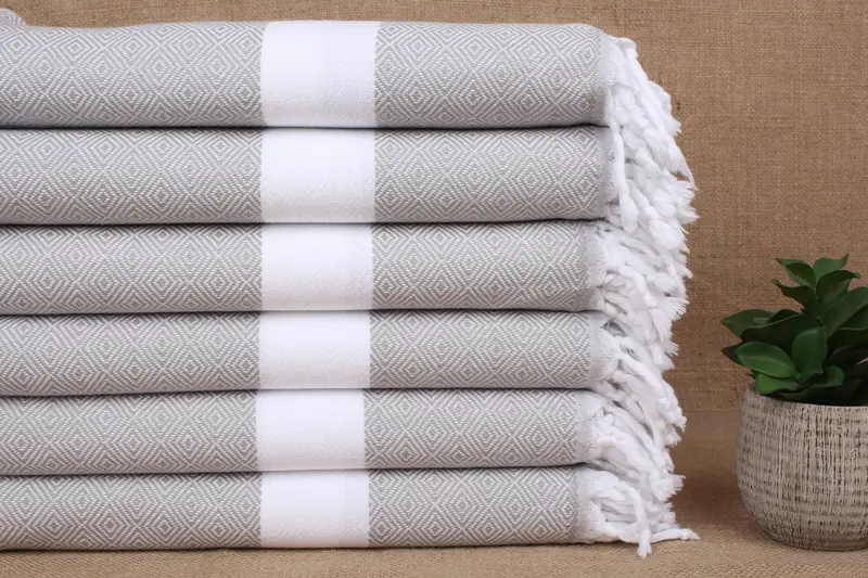 Turkish Towel Personalized Light Gray Diamond, 40x71 Inches