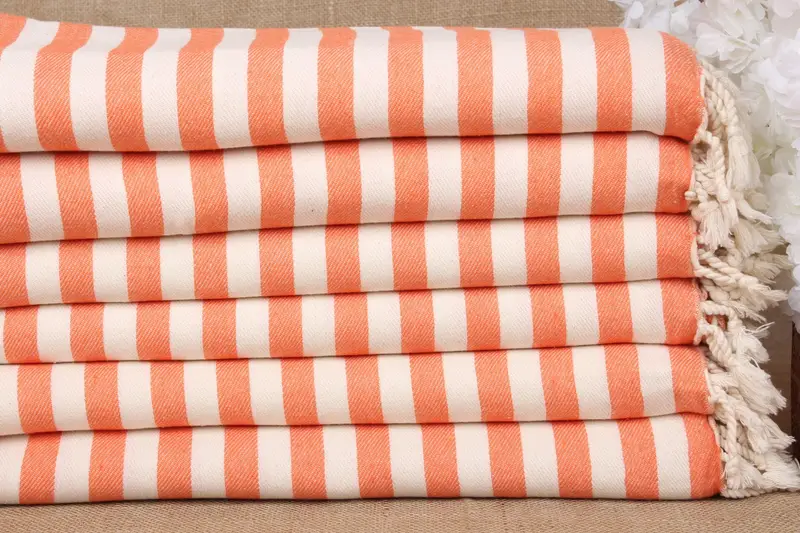 Bridesmaid Gift Orange Striped Towel Bath Towel Beige 36x79 Inches