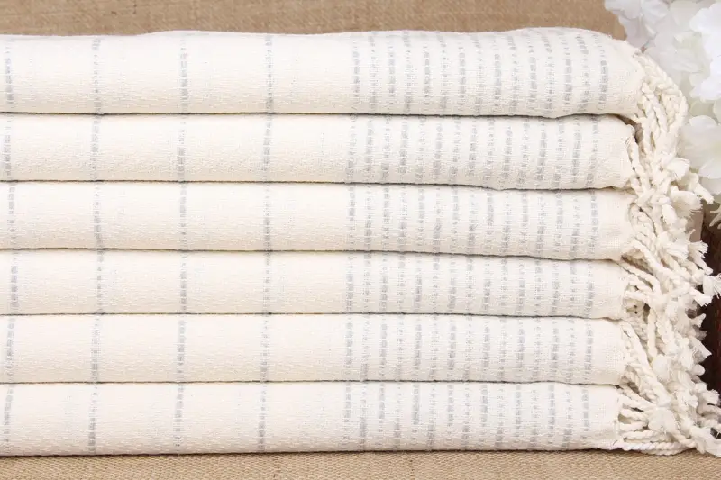 Turkish Towels Beach Personalized Light Gray Striped, 38x71 Inches