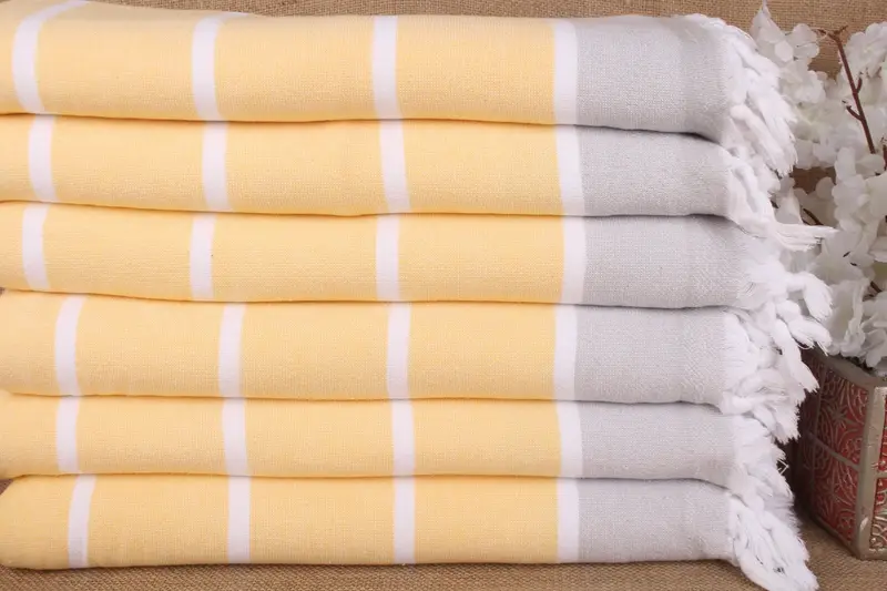 Striped Terry Towel Monogrammed Yellow Organic Cotton, 40x67 Inches