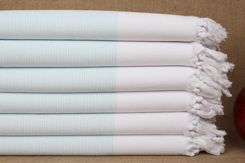 Turkish Beach Towel Mint Beige Stripes, Organic Cotton, 40x71 Inches
