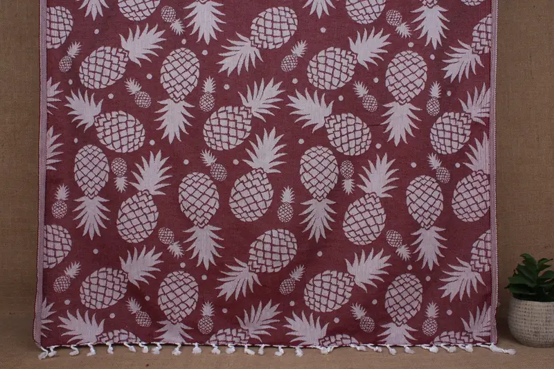 Turkish Towel Beach Custom Burgundy Pineapple Patterned 36x71 Inches
