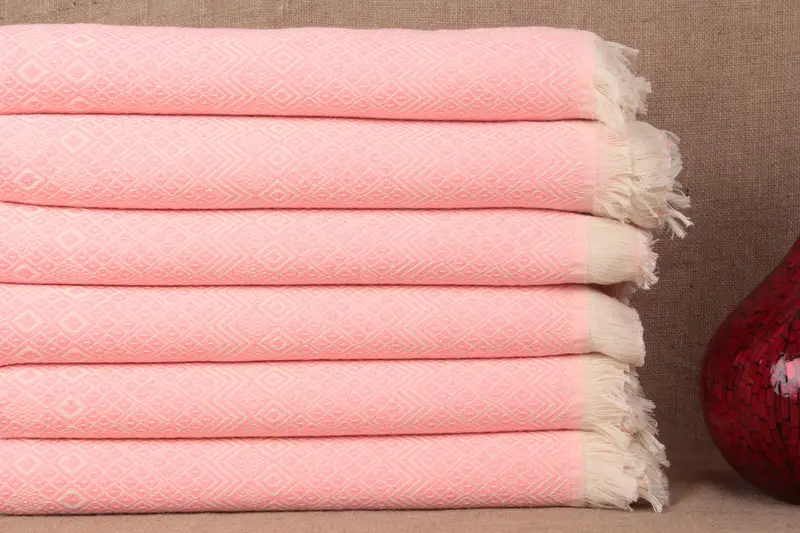 Personalized Turkish Towel Organic Cotton Bright Pink Diamond, 40x71 Inches