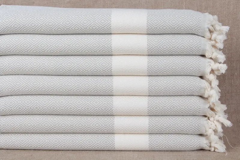 Hand Towel Turkish Cotton Diamond Peshkir Beige, 20x36 Inches