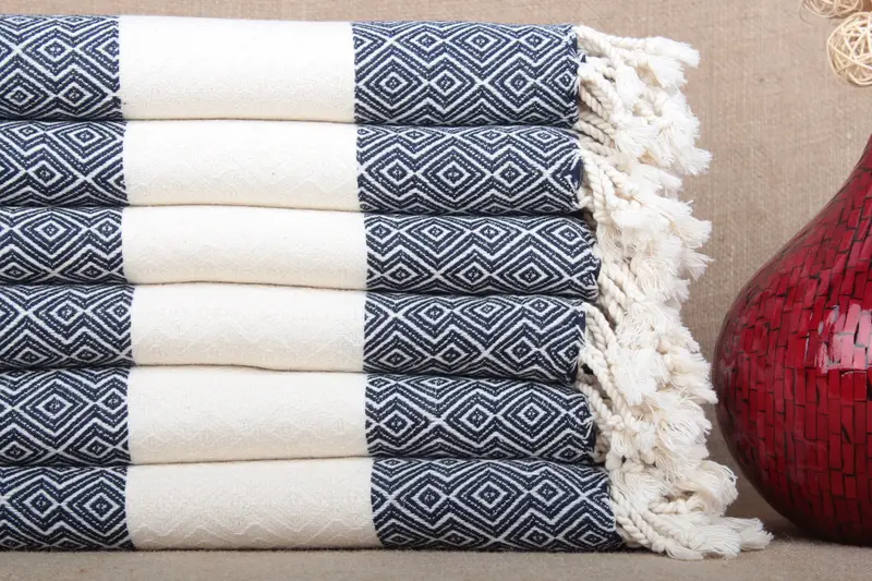 Turkish Bath Towel Organic Cotton Diamond, Beige, 38x67 Inches