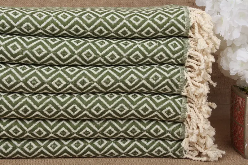 Personalized Embroidered Beach Towel Khaki Green Diamond, 40x71 Inches