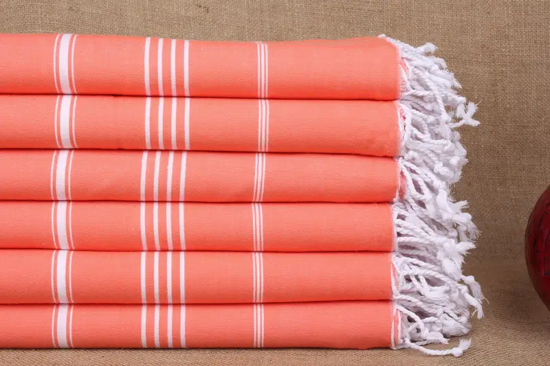 Personalized Towel Turkish Cotton Vermilion Beige Stripes, 40x71 Inches