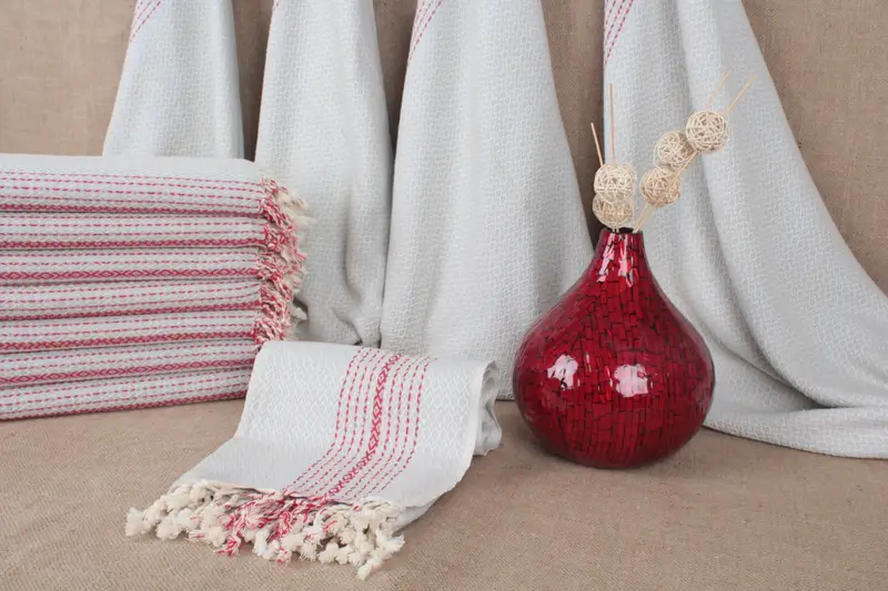 Organic Cotton Towel Geometric Peshtemal Beige, 38x71 Inches