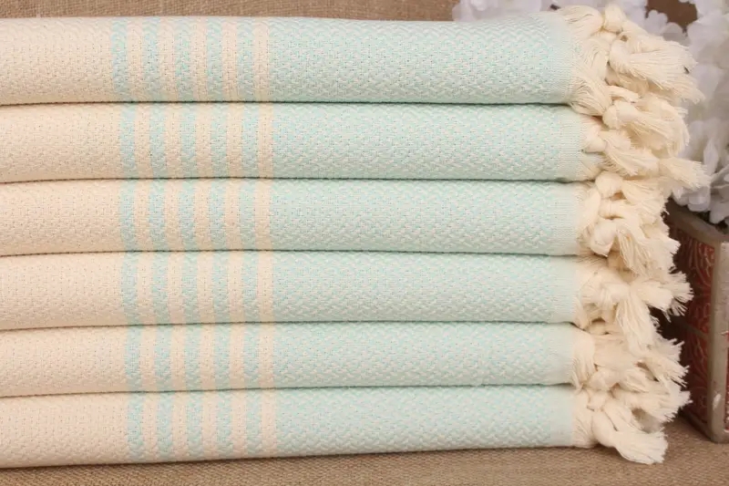 Turkish Beach Towel Mint Cotton Striped, Organic, 40x71 Inches