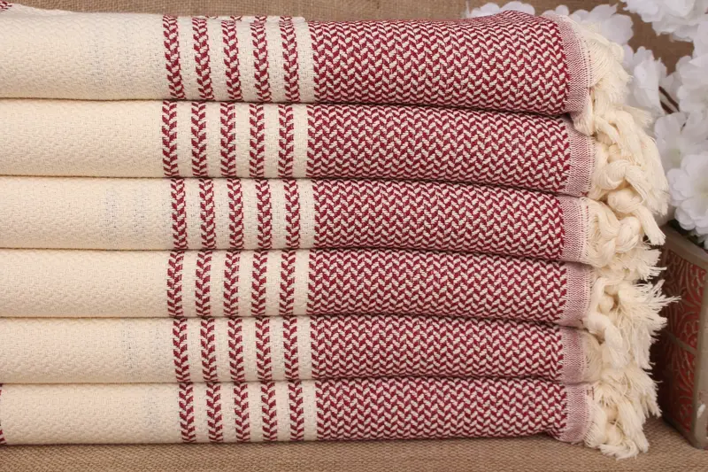 Burgundy Cotton Towel Turkish Bath Towel, Striped, 40x71 Inches