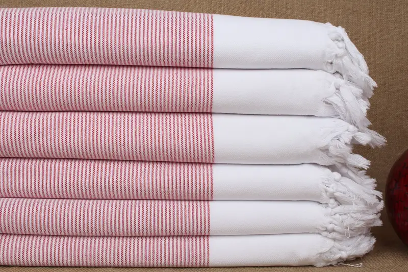Turkish Towel Handmade Organic Cotton Red Striped, 40x71 Inches