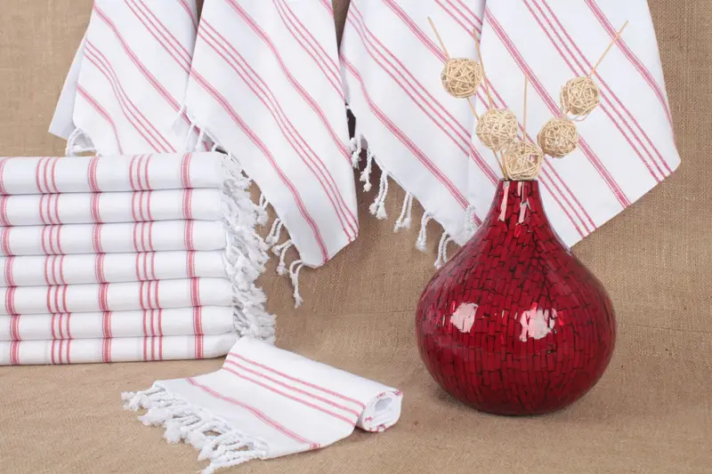 Small Organic Cotton Hand Towel Beige Striped, 24x36 Inches