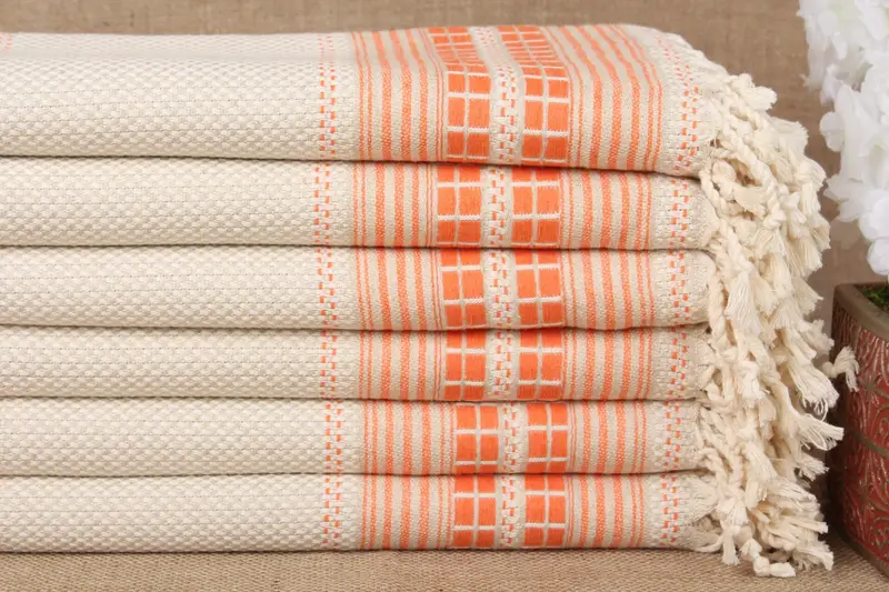 Personalized Orange Linen Towel Bath Towel Beige, 38x65 Inches