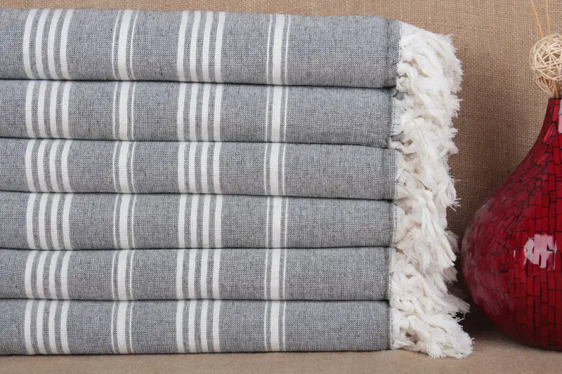 Turkish Bath Towel Organic Cotton Beige Stripes, 40x71 Inches