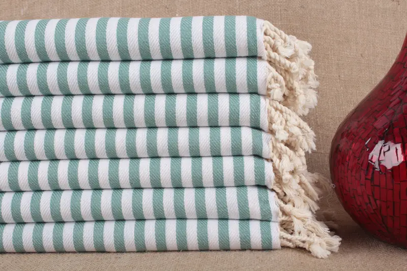 Beach Towel Organic Cotton Striped Beige, 40x71 Inches