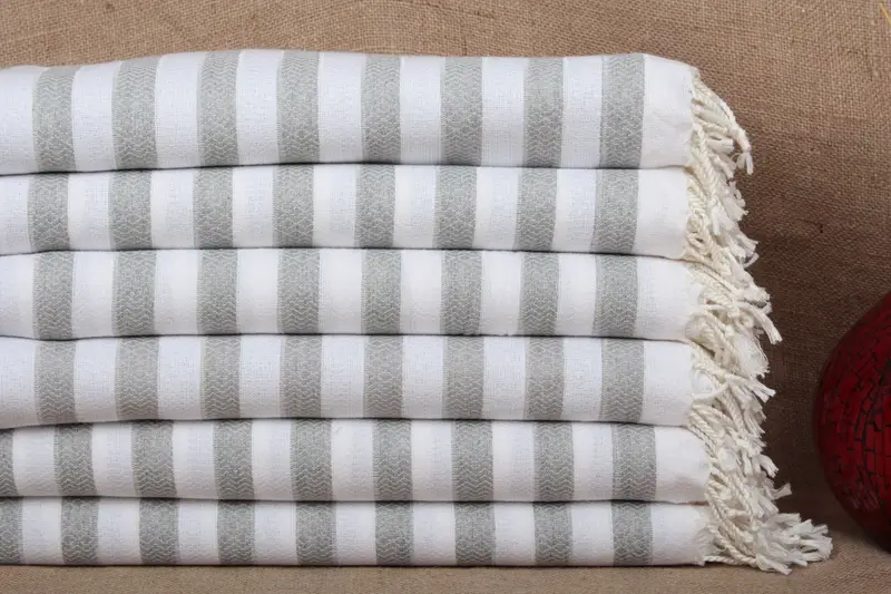 Organic Cotton Striped Towel Light Gray, 36x71 Inches