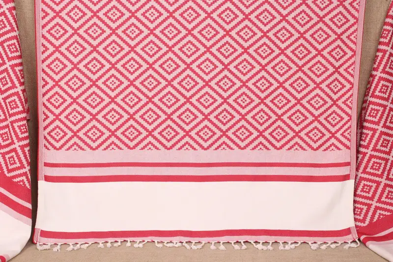 Embroidered Beach Towel Red-Light Beige Geometric, 36x69 Inches