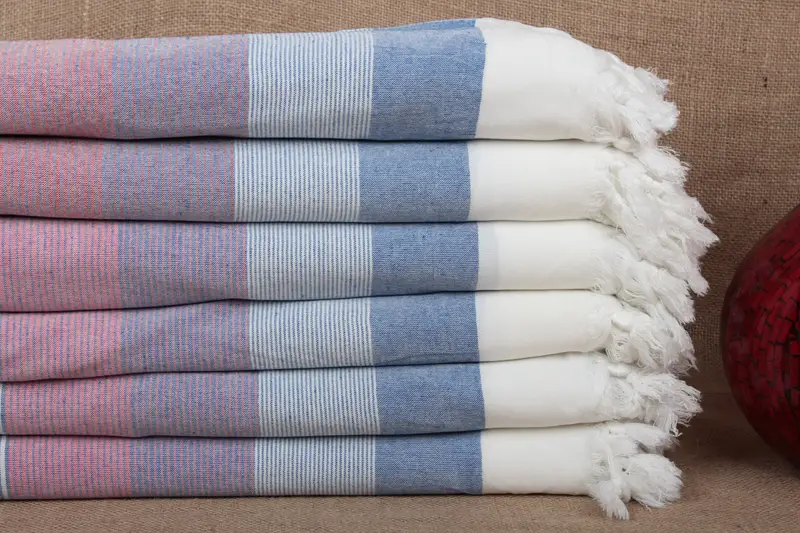 Wedding Gift Turkish Bath Towel Navy Blue-Red Striped, 40x67 Inches