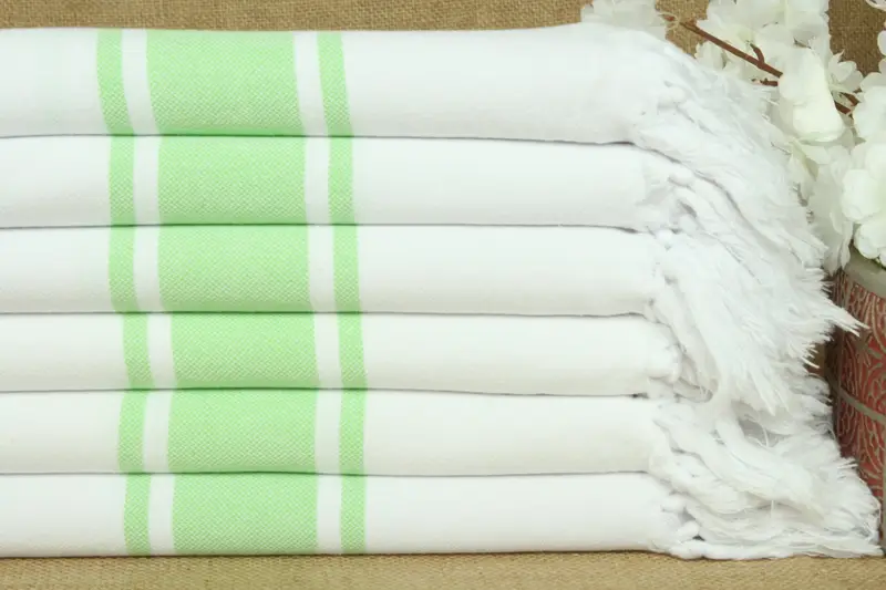 Personalized White-Green Striped Turkish Bath Towel, 40x71 Inches