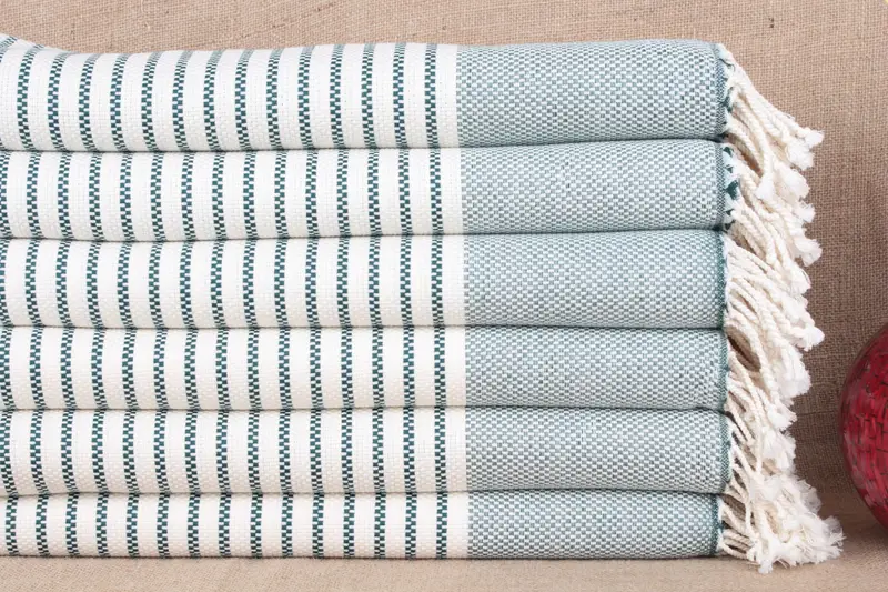 Turkish Towel Dark Green Striped, Organic Cotton, 40x75 Inches