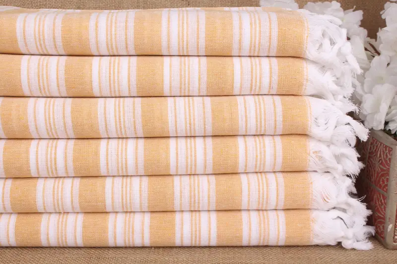 Bath Towel Mustard Cotton 40x71 Inches, Handcrafted Turkish Beach Towel