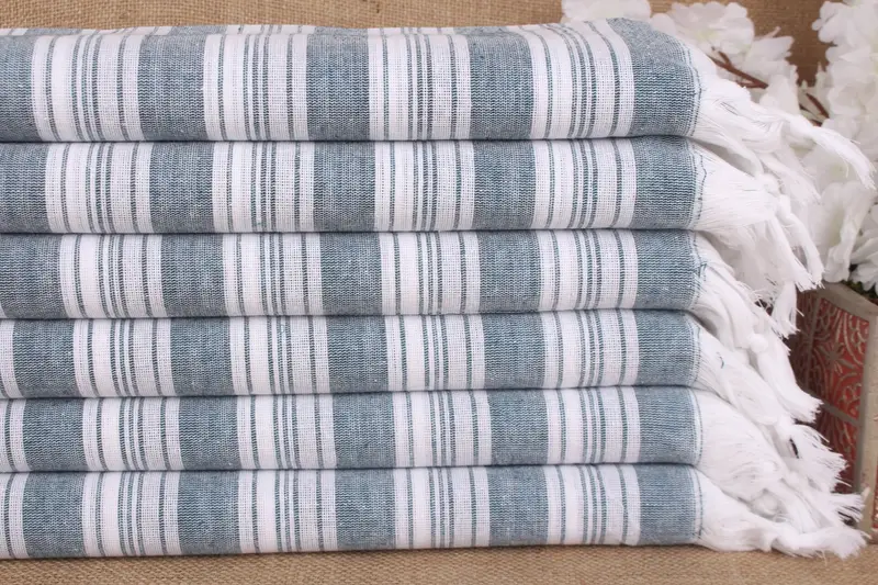 Petrol Blue Cotton Towel Bath, 40x71 Inches, Beige Secondary