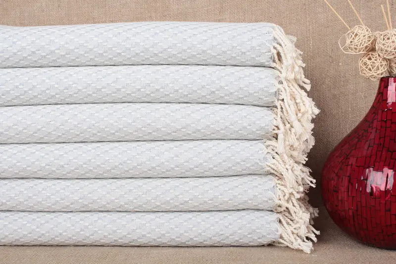 Organic Cotton Towel Chevron Pattern Beige, 38x71 Inches