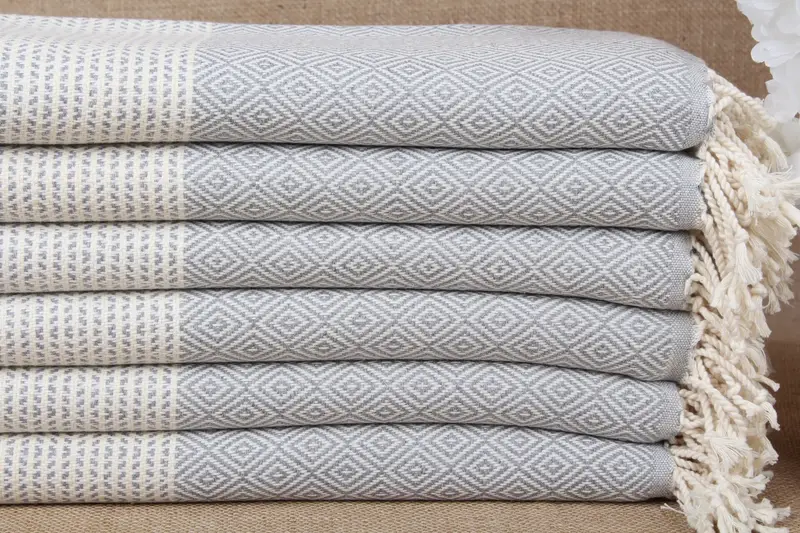 Beach Towel Personalized Turkish Cotton Gray Diamond, 71x40 Inches