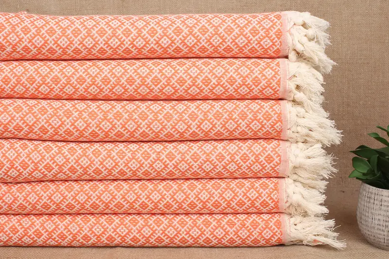 Turkish Towel Personalized Orange Diamond Bath Towel, Beige, 40x71 Inches