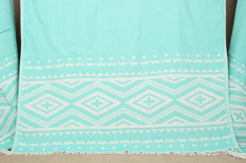 Personalized Towel Benetton Green with Beige, Organic Cotton, 36x71 Inches