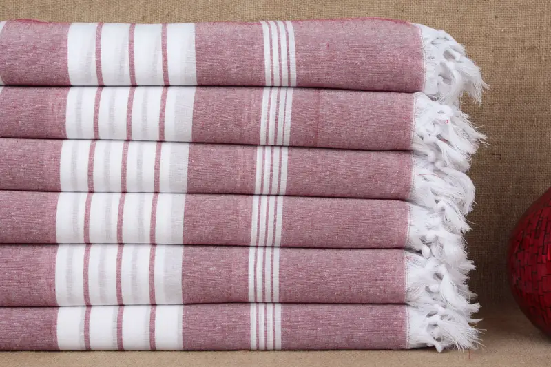 Personalized Organic Cotton Towel Burgundy Stripes, 40x71 Inches
