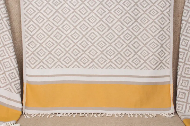 Monogram Beach Towel Turkish Cotton Light Brown-Mustard, 36x69 Inches