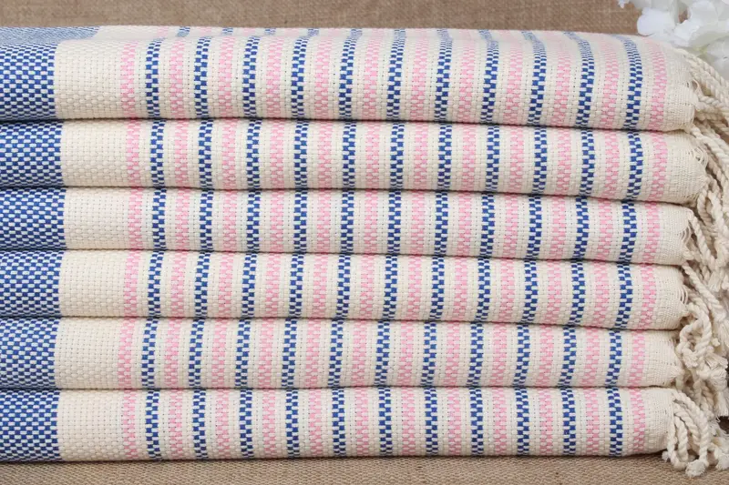 Turkish Towel Monogram Beach Towel Pink-Sax Blue Geometric 40x71 Inches