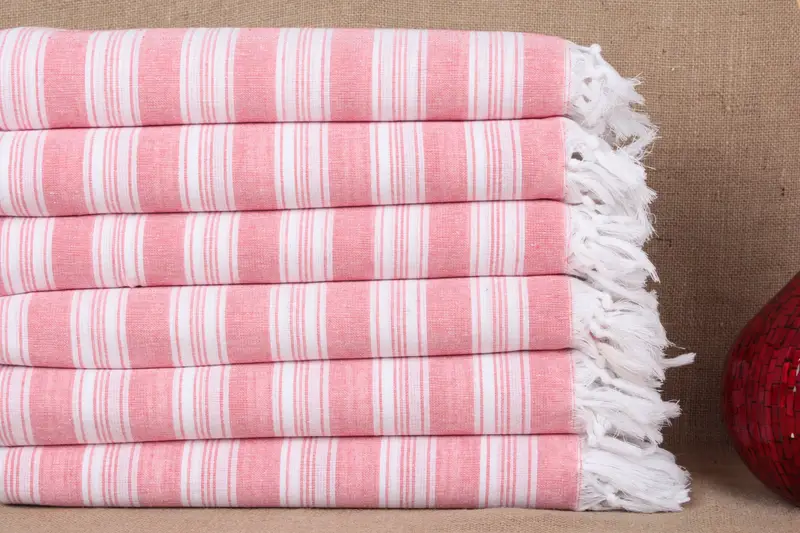 Organic Cotton Towel Light Red Striped Personalized 38x67 Inches