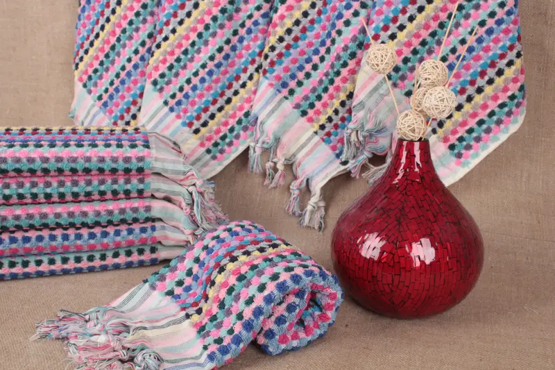 Turkish Towel Hand Towel Organic Cotton Polka Dot Beige, 20x40 Inches