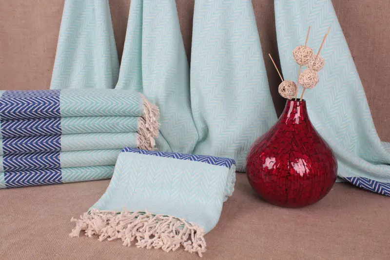 Personalized Turkish Towel, Chevron Pattern, Beige, Organic Cotton, 40x71 Inches