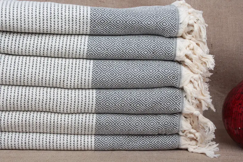 Organic Cotton Towel Dark Gray Diamond Pattern, 36x71 Inches
