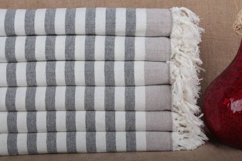 Organic Beach Towel Striped Beige 40x67 Inches