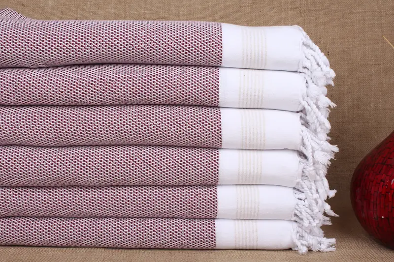 Turkish Towel Beach Custom, Burgundy Striped, 40x71 Inches
