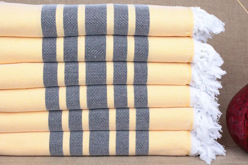 Beach Towel Turkish Cotton Yellow-Black Chevron, 36x67 Inches