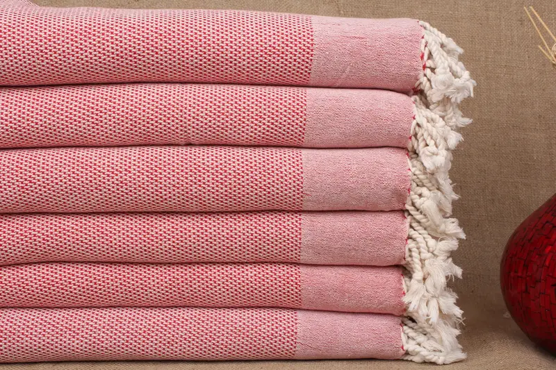 Turkish Towel Custom Red Geometric Bath Towel, Beige, 40x71 Inches