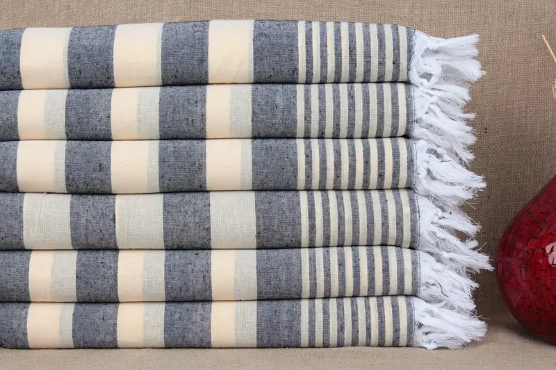 Personalized Yellow-Black Striped Bath Towel, Organic Cotton, 36x67 Inches