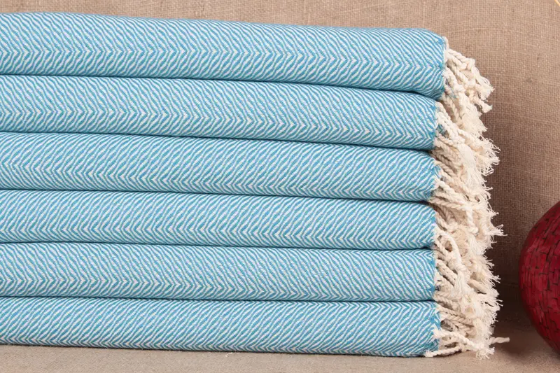Face Towel Chevron Peshkir Turquoise Embroidered, 20x40 Inches
